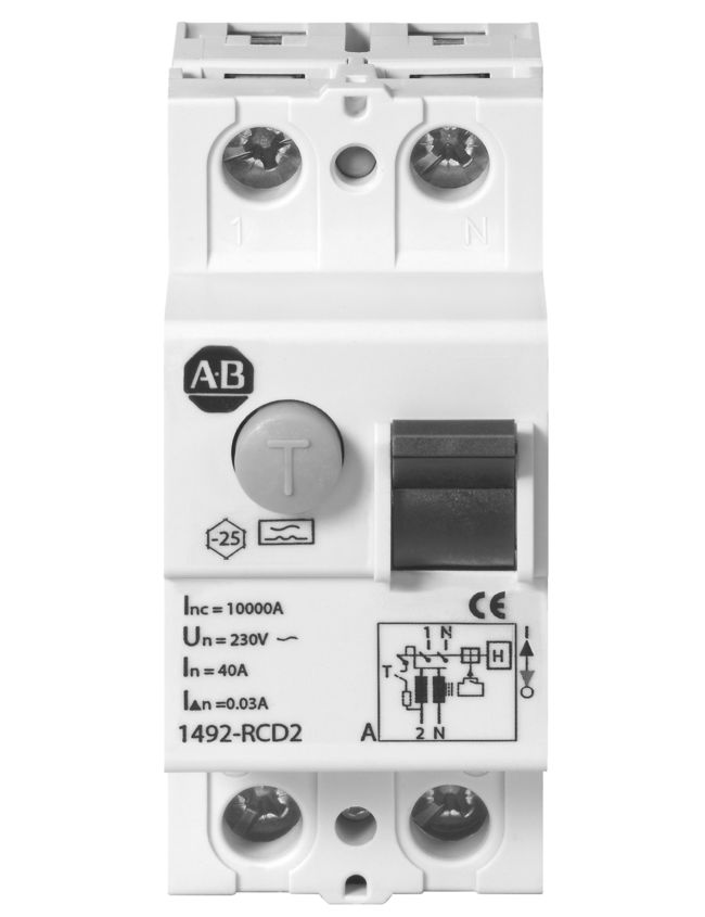 Серия 1492-RCD включает в себя устройства защиты от остаточного тока для определения утечки на землю по стандартам IEC. Эти устройства используются в сочетании с миниатюрными автоматическими выключателями (1492-SP).