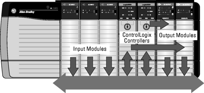 Специализированные модули ввода / вывода; Входы/выходов : Левая секция: 2 группы по 4 выхода и 4 входа каждый разделе Центр: интерфейс распознаватель и / вывода контролировать Справа в: 2 группы по 4 выхода и 4 входа в каждой. Съемный блок: Requires 3 RTBs: 1756-TBNH or 1756-TBSH
