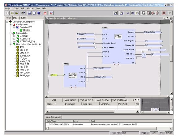 • Разработка и тестирование программ для всех систем GuardPLC делается с RSLogix гвардии ПЛЮС! программирования, простой в использовании, но очень мощное программное обеспечение программирования. RSLogix гвардии ПЛЮС! Программное обеспечение на основе проектов, то есть вы можете хранить программы для нескольких контроллеров в один проект. RSLogix гвардии ПЛЮС! является основанный на графических функциональных блоков. Просто создать свой ​​логику, используя предопределенные элементы, такие как И-ворот или-ворот, числовых функций и т.д., а затем подключить входы и выходы с помощью мыши.