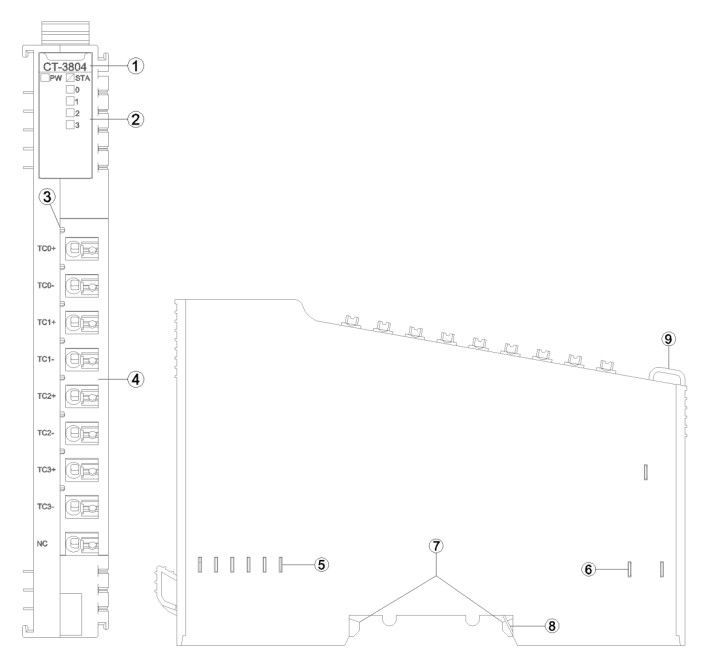 CT-3804: 4 канала Аналоговый вход, Thermocouple( J-тип, K-тип, E-тип, T-тип, S-тип, R-тип, B-тип, N-тип, C type)
