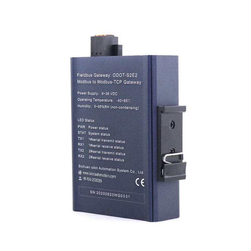 Шлюз ODOT-S2E2/S4E2 представляет собой преобразователь протоколов Modbus-RTU/ASCII в Modbus-TCP. Данное устройство может подключать Modbus-устройство к ПЛК и ведущему компьютеру, поддерживающему Modbus-TCP (клиентские) функции. Он поддерживает одновременное подключение 5TCP-клиентов. И продукт принимает оболочку из алюминиевого сплава с твердым дизайном и поддерживает DIN-рейку установки. Все последовательные сигналы обеспечивают встроенную фотоэлектрическую изоляцию.