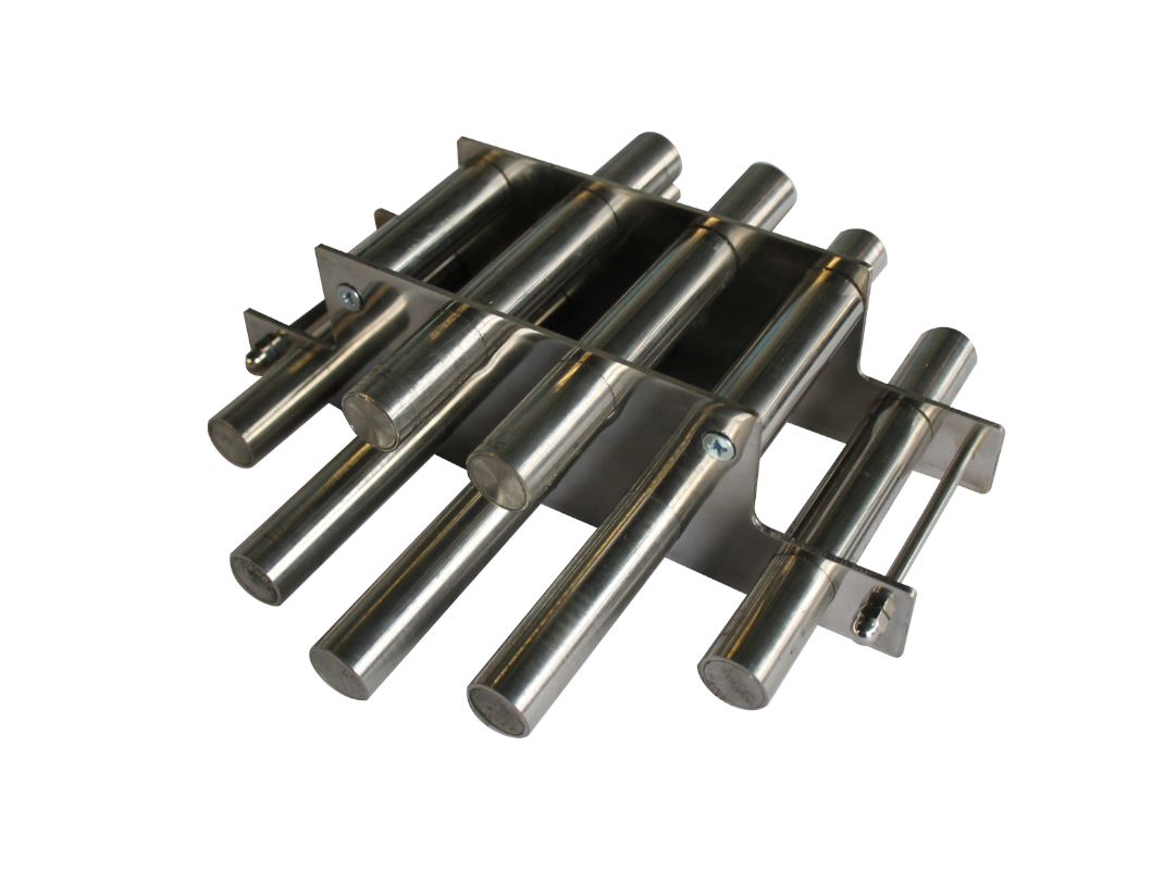 Поток сыпучего материала или жидкости, проходя сквозь решетку, попадает в мощное магнитное поле, под действием которого ферромагнитные включения задерживаются на поверхности стержней решётки, а немагнитный сепарированный продукт, двигаясь дальше, переходит на следующую стадию транспортировки.