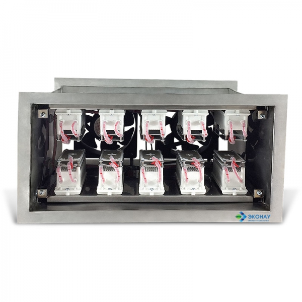 Встраивается в приточную вентиляцию. Изготавливается под заказ для вентиляционных каналов любых форм и размеров. Производительность озона: 10 г/час