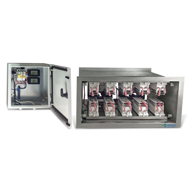 Встраивается в приточную вентиляцию. Изготавливается под заказ для вентиляционных каналов любых форм и размеров. Производительность озона: 60 г/час