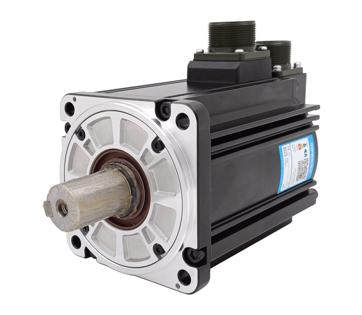 Серводвигатель MS1-R с тормозом, 2 кВт, 6.36 Н·м, 3000 об/мин, 380 В, фланец 100 мм, 23-битный абсолютный энкодер, сплошной вал с центровым резьбовым отверстием и шпонкой, сальник, IP67