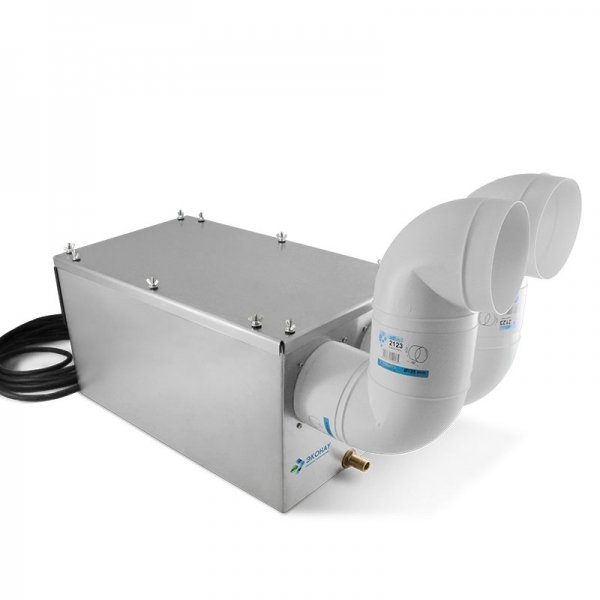 Производительность 12 литра в час. Корпус из нержавеющей стали. Подключается к водопроводу. Удобно встраивать в систему вентиляции.