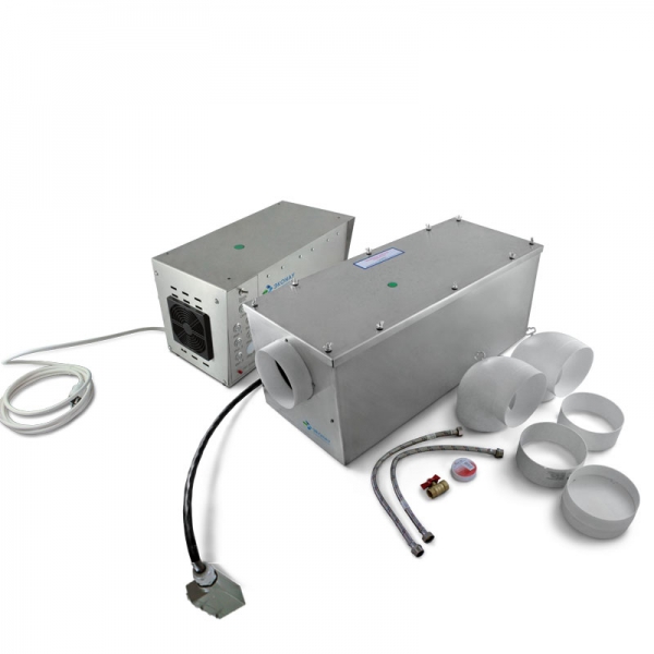Производительность 20 литра в час. Корпус из нержавеющей стали. В комплекте с модулем контроля и управления влажностью. Подключается к водопроводу. Удобно встраивать в систему вентиляции.
