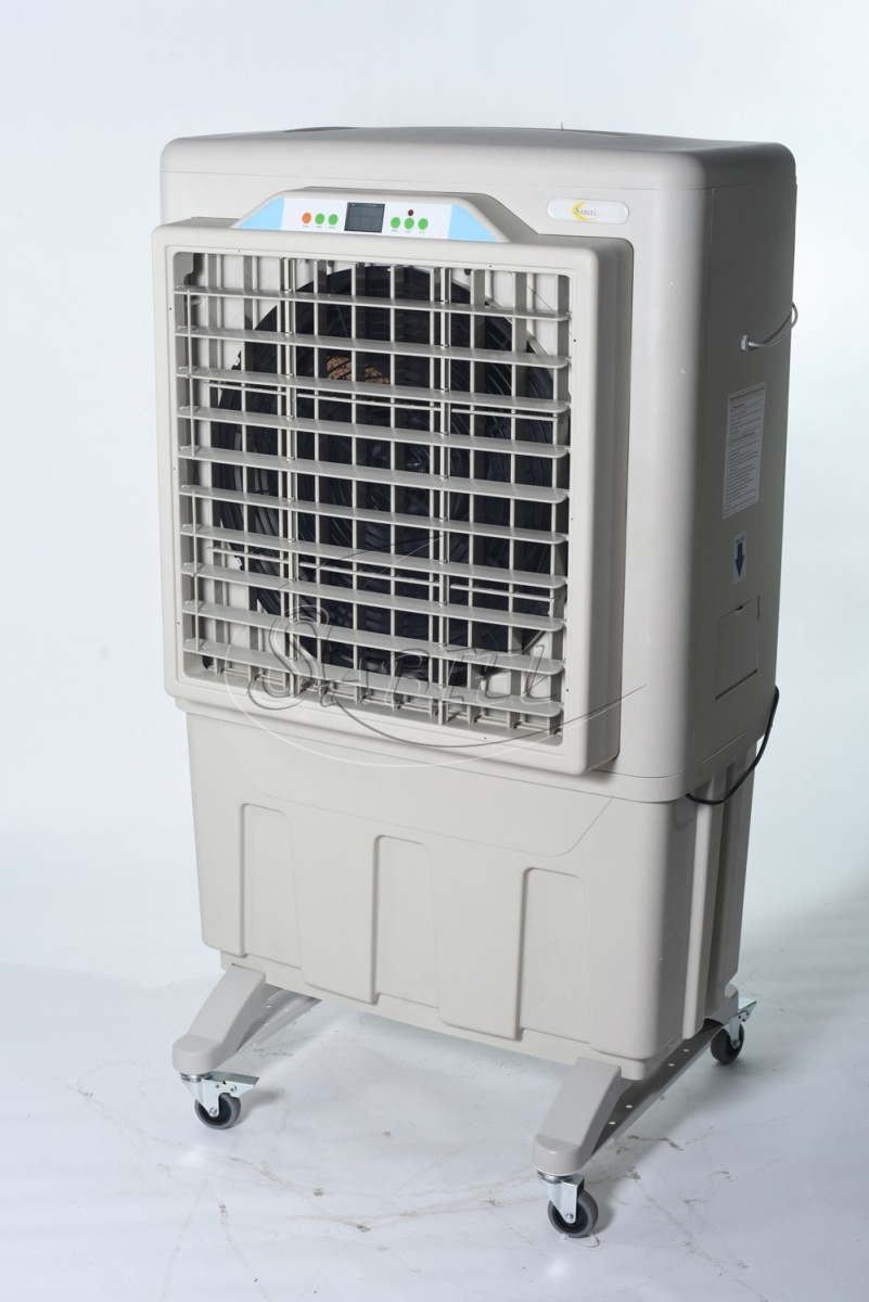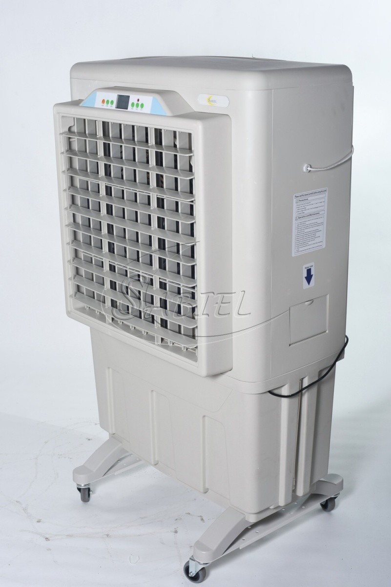 Промышленный испарительный охладитель-увлажнитель воздуха SABIEL МВ70H с встроенным термо- и гидростатом, сочетает функции охладителя, увлажнителя, аквафильтра, вентилятора.